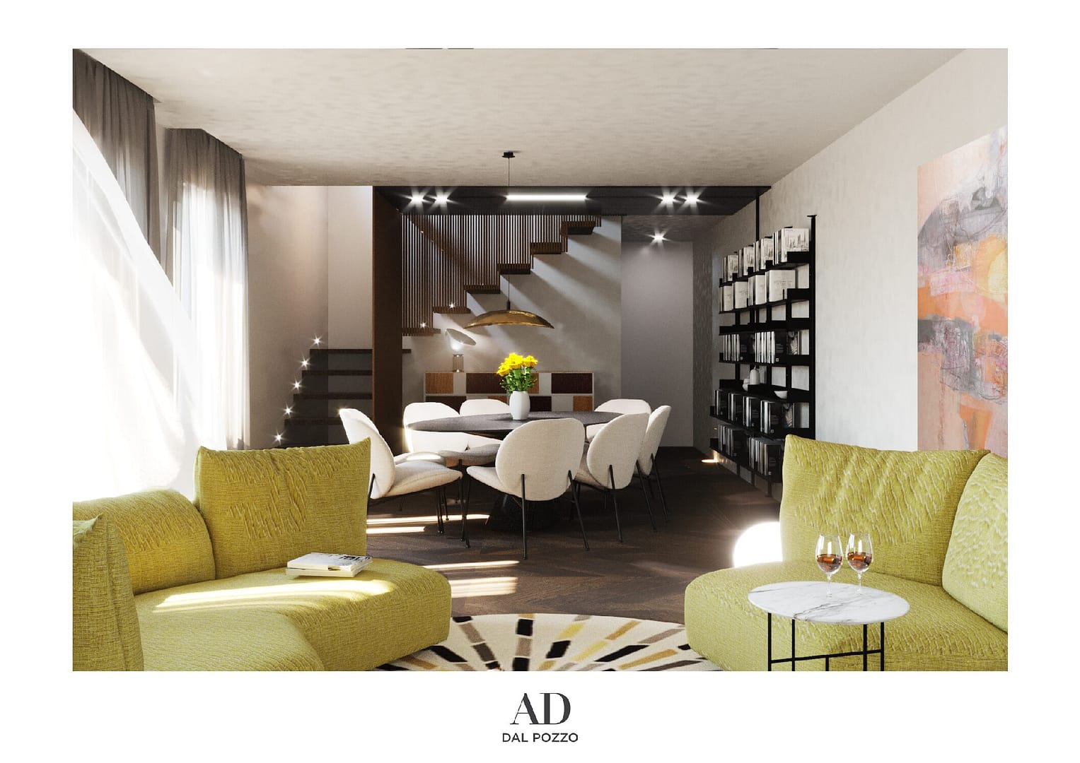 Lo spazio al piano terra è stato impostato prediligendo una zona cottura dedicata e un living spazioso e luminoso. E’ stata riservata un’area apposita per la creazione di un piccolo studiolo affacciato sullo splendido giardino e un bagno di servizio. Tramite una scala aperta sul salone, si giunge al piano superiore dotato di un’ampia zona padronale con bagno privato finestrato, di due camere ulteriori e un secondo bagno finestrato.